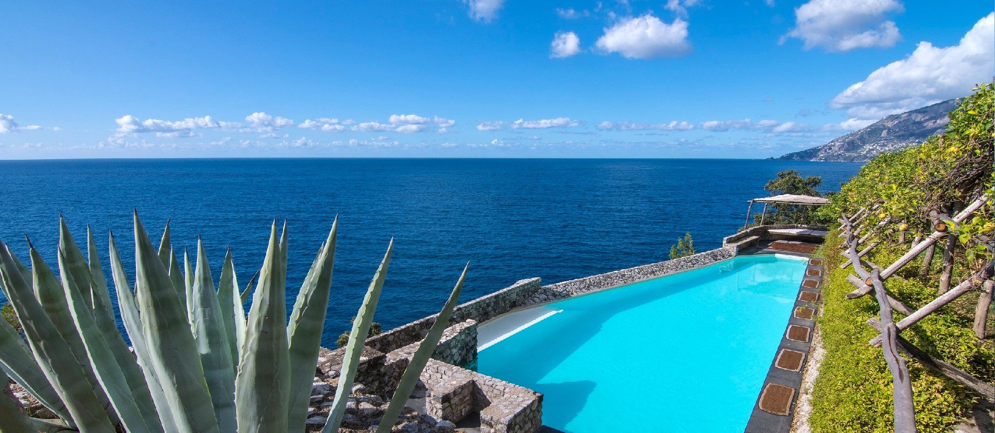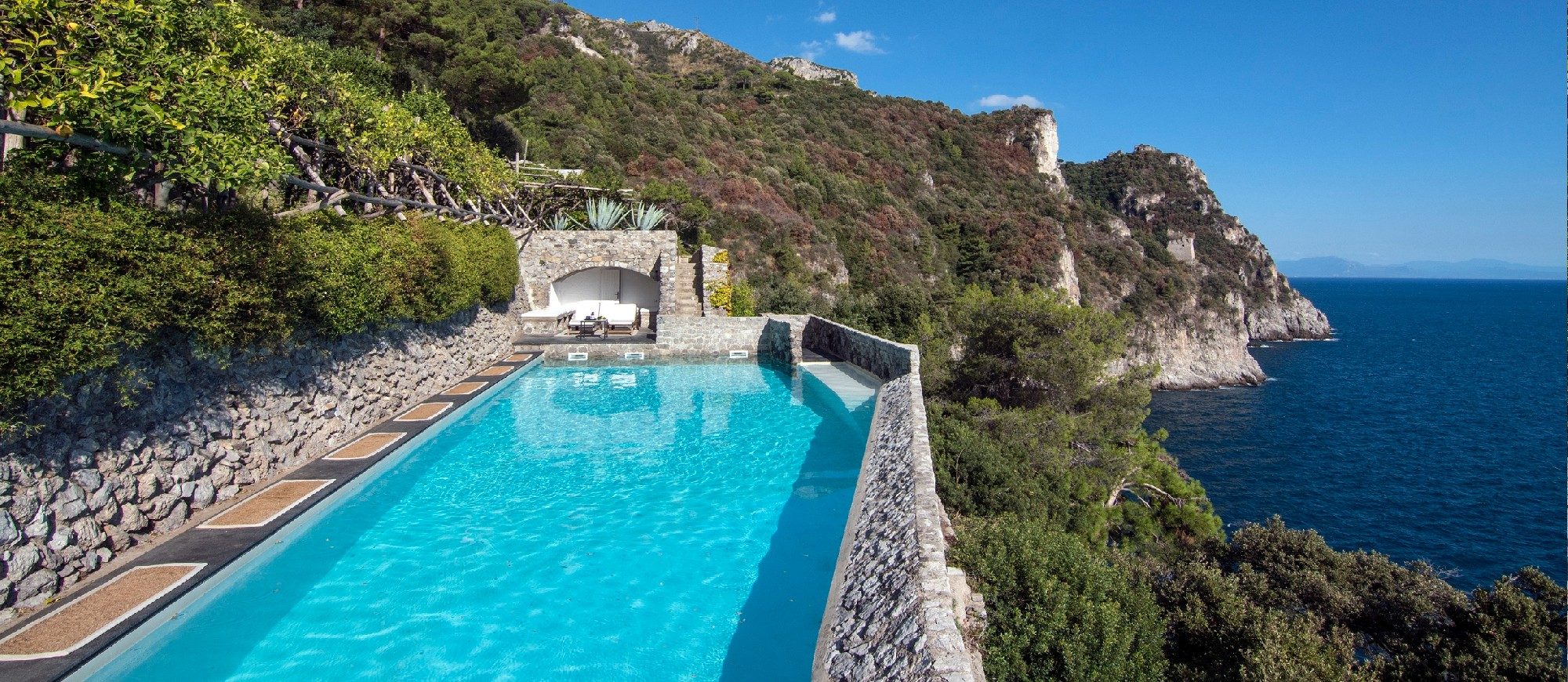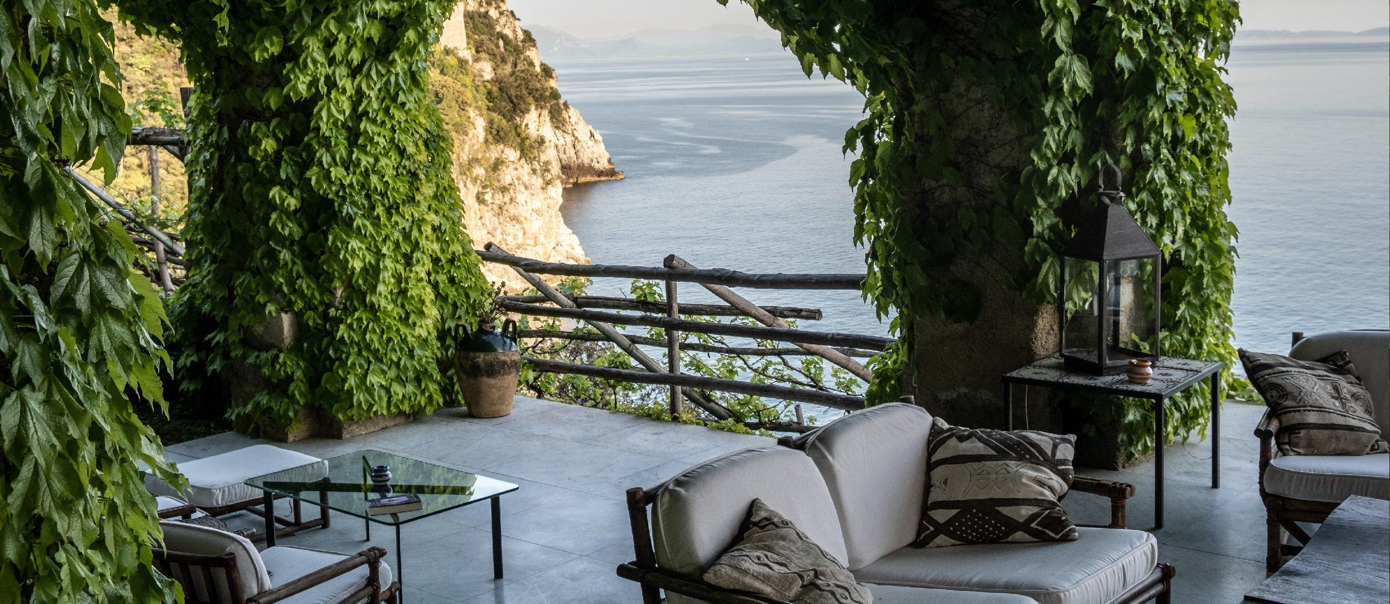 Overlooking the turquoise waters of the Amalfi Coast and perched on a cliffside just outside Maiori, this contemporary testament to Southern Italian style features a collection of terraces, gardens, heated pool and private access to the sea.