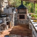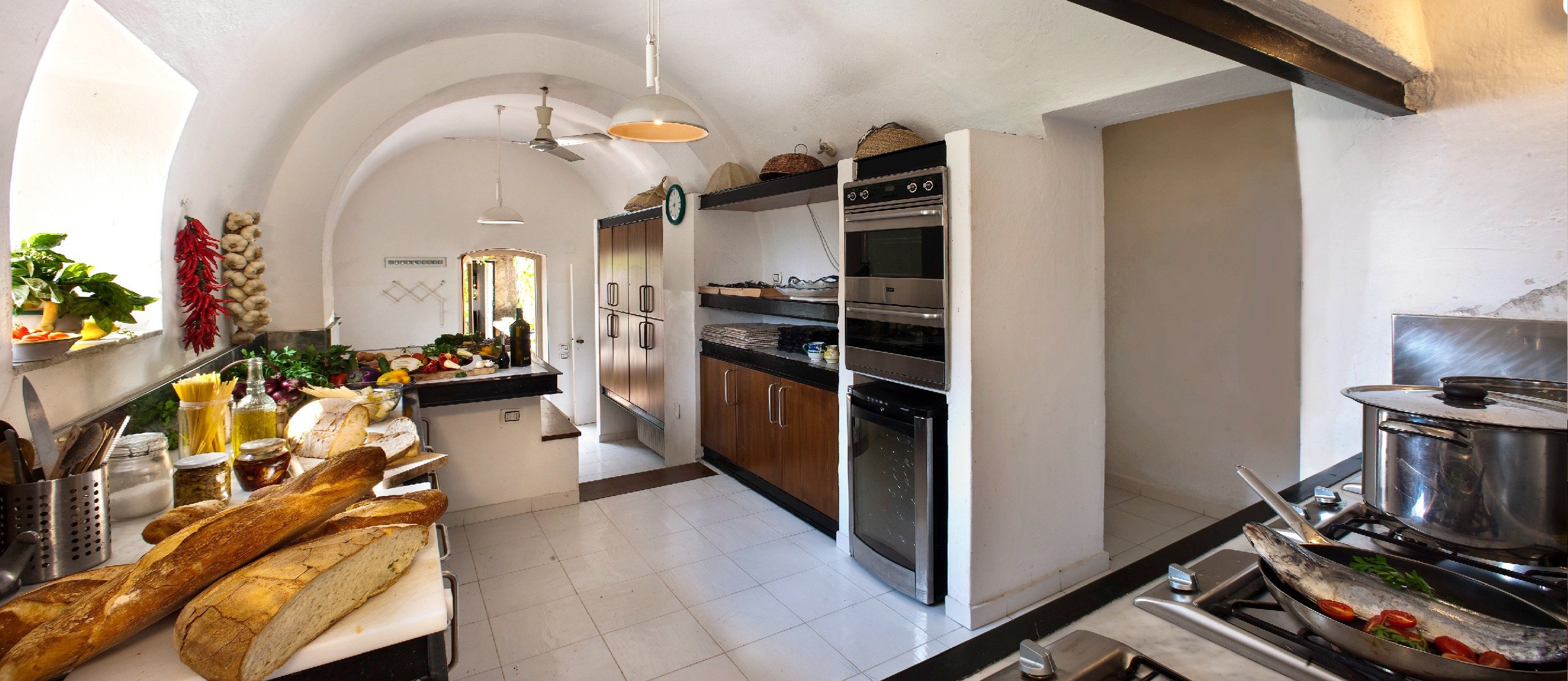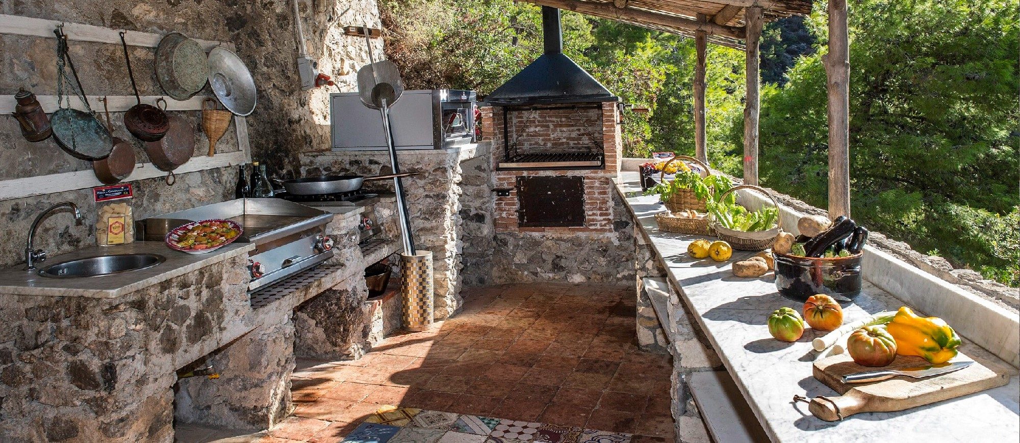 There is an indoor, well-equipped kitchen for staff use featuring all professional tools for cooking and there is an outdoor kitchen with a grill, electric pizza oven and wood fireplace.