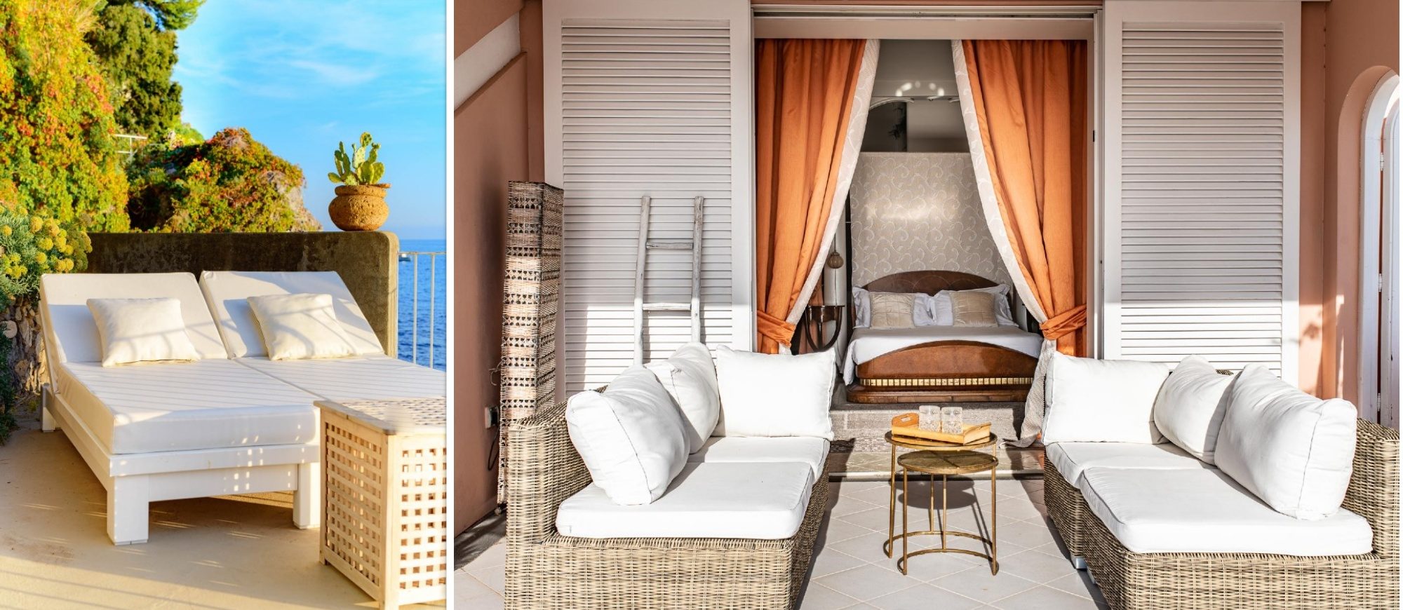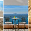 The estate includes 650 square meters of private grounds and gardens. The interiors include a spacious living room, a dining area with access to the outside terrace with sea view, a well-equipped kitchen, a gym, and a master suite with a terrace overlooking the sea.