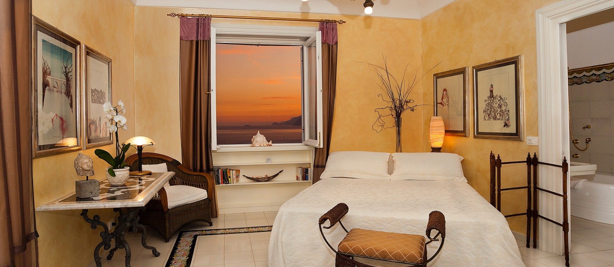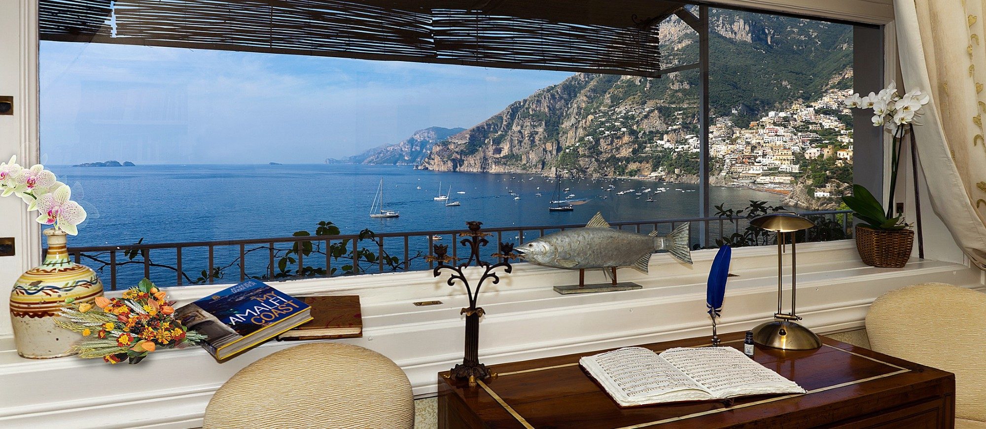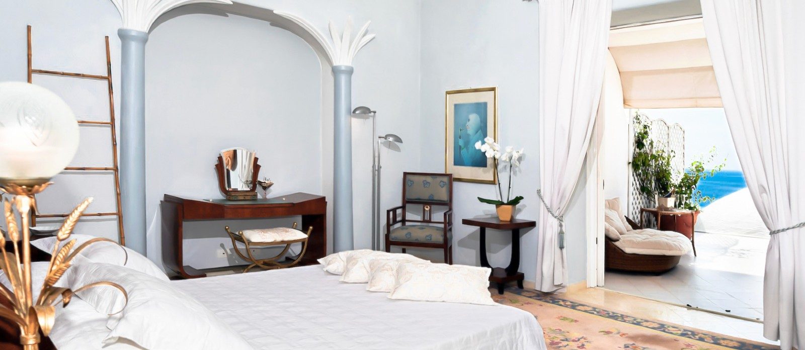 Situated in a private and tranquil location surrounded by gardens of bougainvillaea, its views across the sea and over Positano and the coast are incomparable. Elegantly furnished with antique and contemporary art, the villa comes with a gym inside of a natural cave and a private dock with sun-beds, external shower and private entrance to the sea.