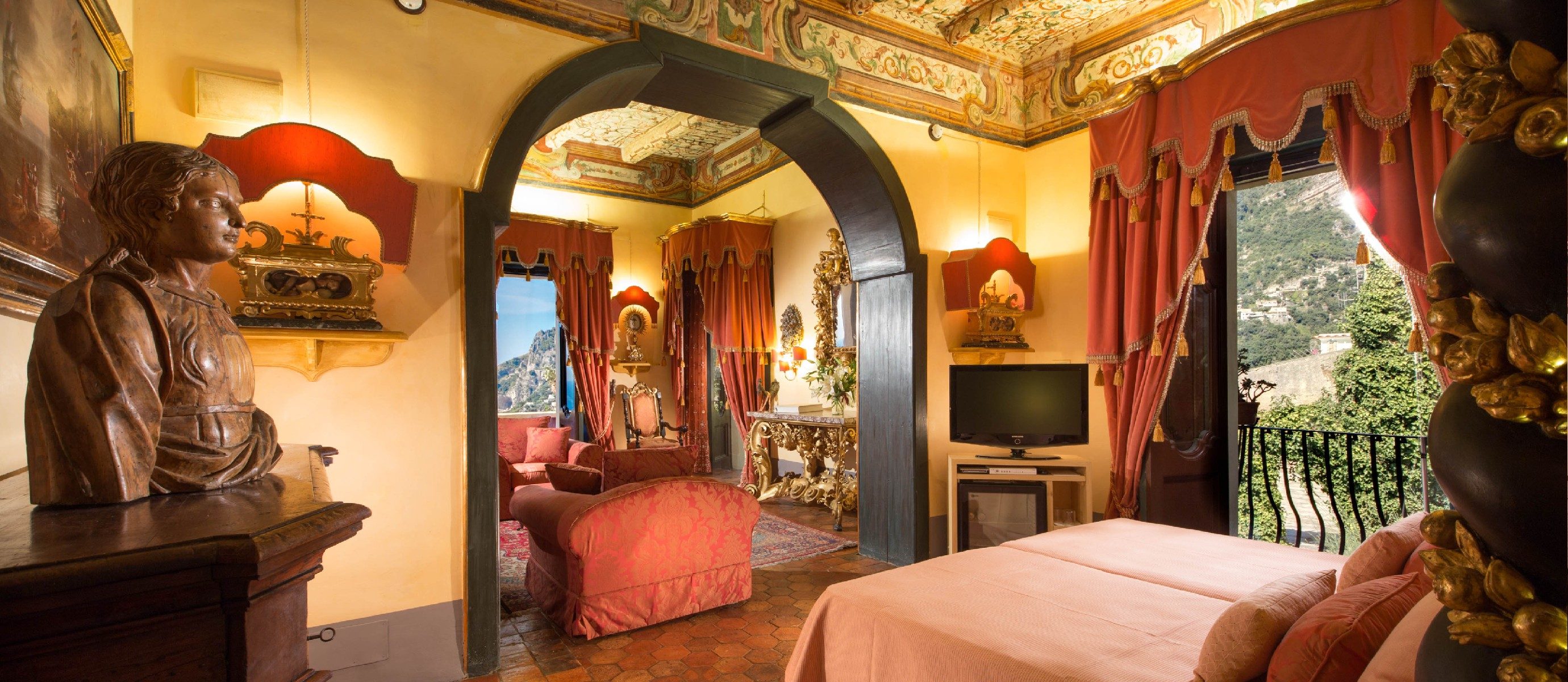 With its striking rich red stucco façade and grand terraces, this 17th century Baroque Palace offers complete indulgence and luxury.
