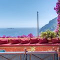 Its beautiful frescoed ceilings date from the 1700s, a private bathroom decorated with antique tiles and a stone sink, two balconies, and a magnificent terrace with a view over Positano’s beach.