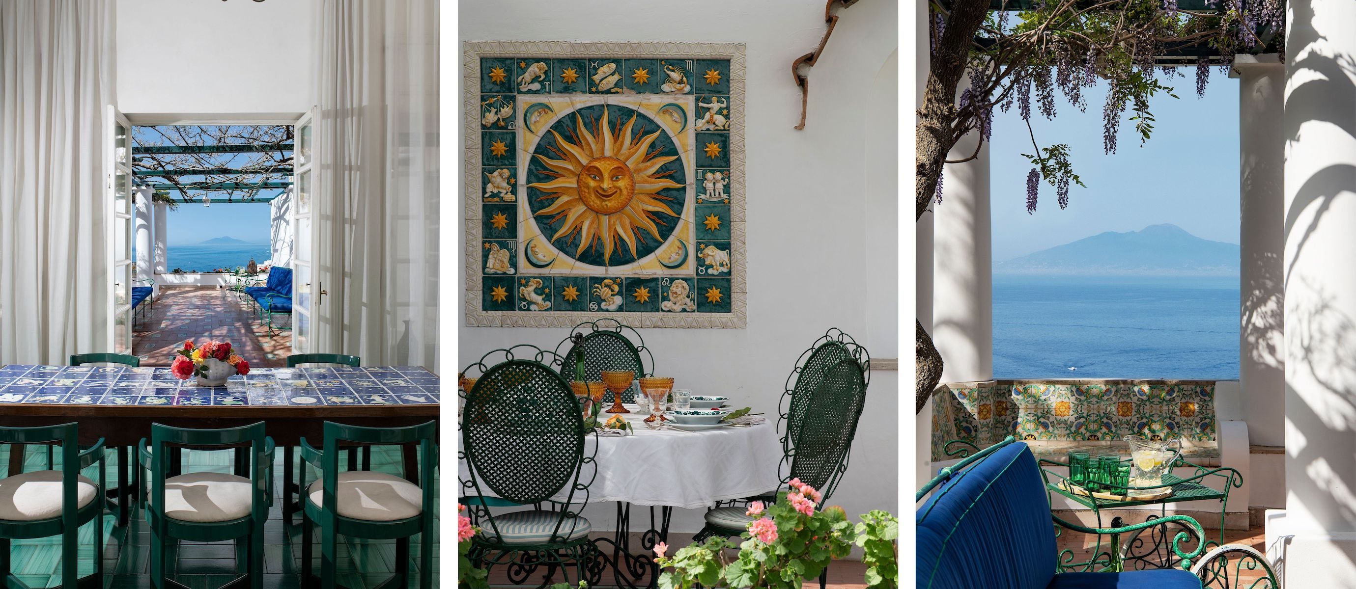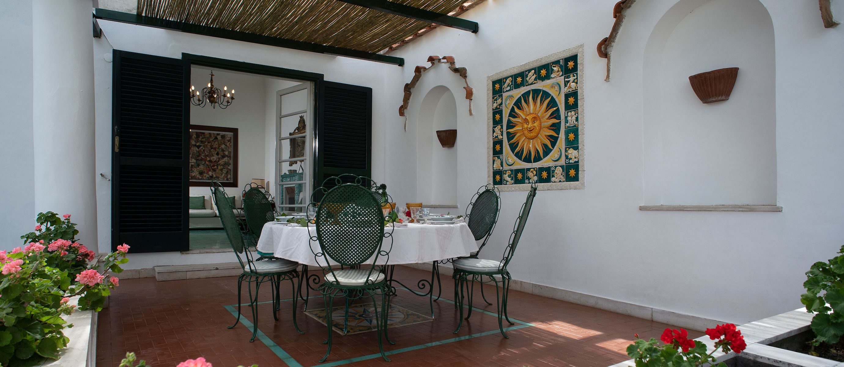 The villa is perfectly renovated, yet still retains the flavour of the 50s. with a magnificence of polychromies given by the typical Vietrese majolica and ceramic sculptures by the former owner the artist, Ing. Avv. Mario Cussino who oversaw the restructuring and expansion right after the second world war. The sun panel with beautiful, sometimes ironic, ideas on the zodiac and the meaning of the stars and the impressive fireplace sculpted with fantastic marine worlds. Today the Villa is still owned by the Cussino Family.