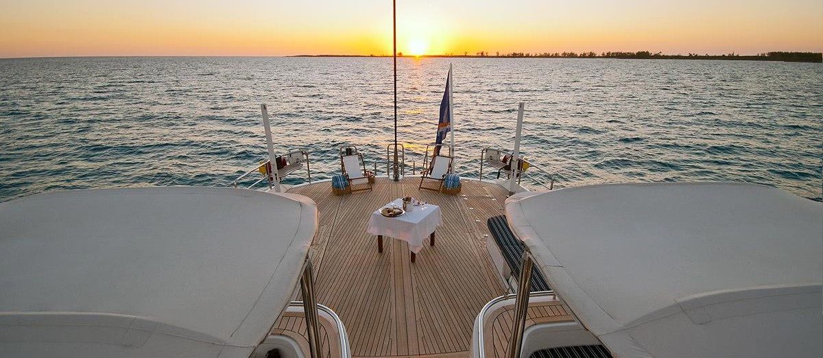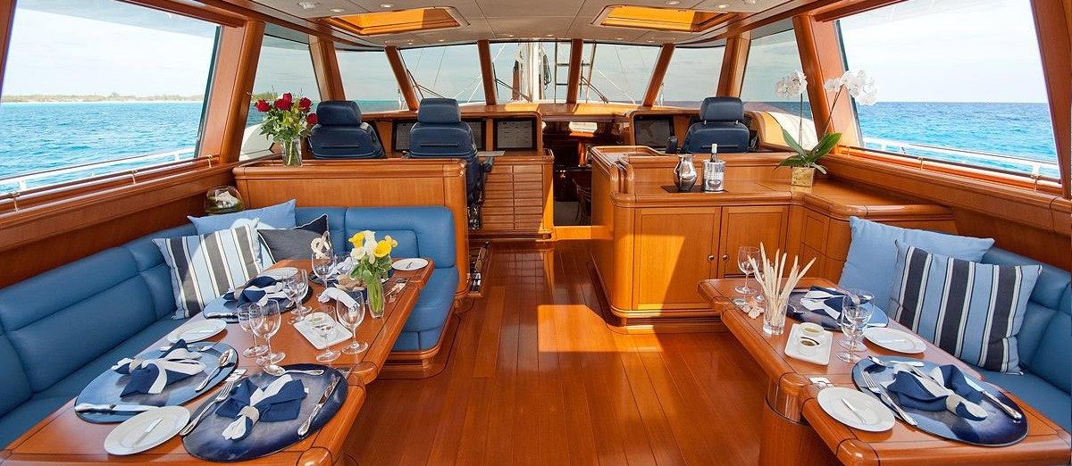 Meals can be enjoyed at the saloon dining table or in the sheltered cockpit. A smaller table can also be setup on the aft deck for a completely al fresco arrangement.